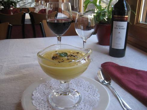Hi trobem una oferta gastronòmica equilibrada i suficient, a preus que no són els habituals dels restaurants a peu de pistes, en què es conjuminem la senzillesa directa d’unes carns a la brasa (acompanyades de poderoses guarnicions, com ara patates i carxofes al caliu, bolets...) amb plats més elaborats, alguns amb l'accent autòcton d’aquestes muntanyes, altres amb un discret aire afrancesat. Val a dir que tant les melmelades com els licors són casolans, elaborats per la família amb fruits silvestres collits personalment.